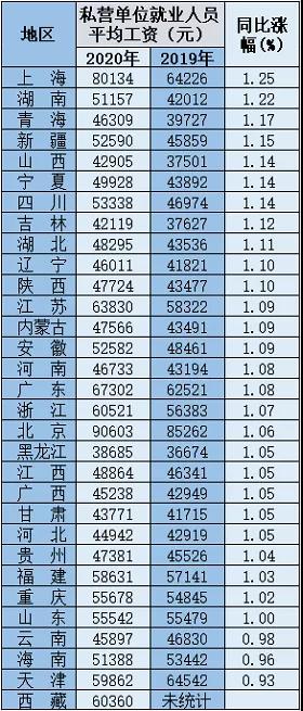 私營單位中,北(běi)京、上(shàng)海(hǎi)、廣東(dōng)、江蘇、浙江、西(xī)藏六個(gè)地(dì)區(qū)均超過6萬元,排名靠前。